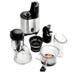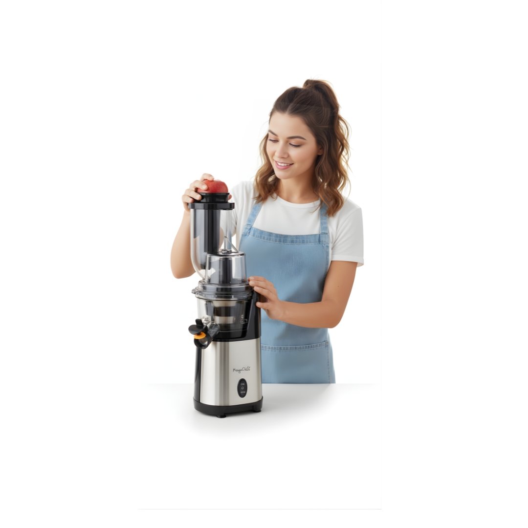 The wide feed chute allows you to juice whole fruits and vegetables, reducing prep time and making your juicing routine faster and easier. Its stainless-steel body and BPA-free components ensure both durability and safety, while the quiet motor provides smooth operation without disturbing your home environment.